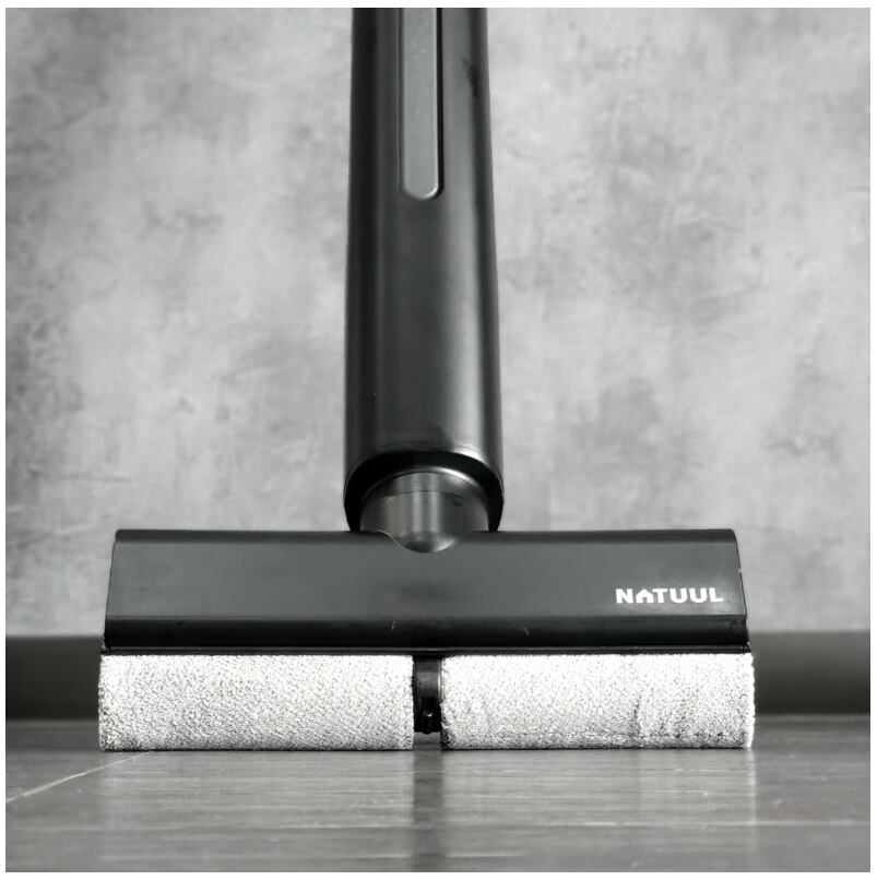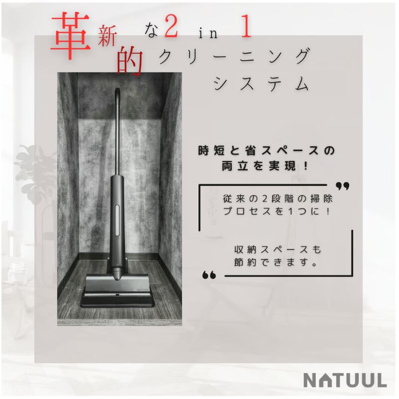 本製品は、縦回転式の電動モップクリーナーで、乾拭きから水拭きまでシームレスにこれ一台で完結します。