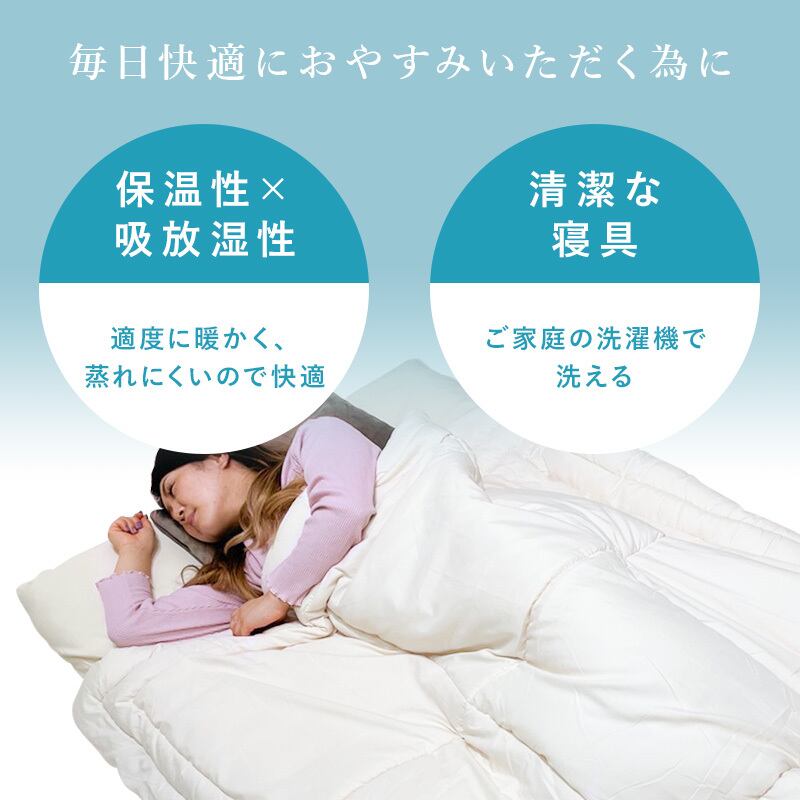 ご家庭の洗濯機で洗える 通年使える肌掛け布団。